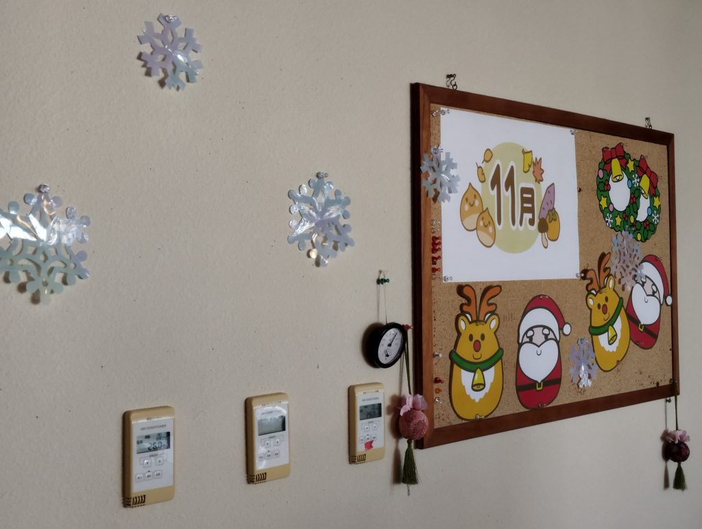 11月は、クリスマスに向けて飾りつけを行いました。皆さん一生懸命飾って下さり、ツリーを眺めて綺麗だねと楽しまれておりました。クリスマス会が楽しみです!