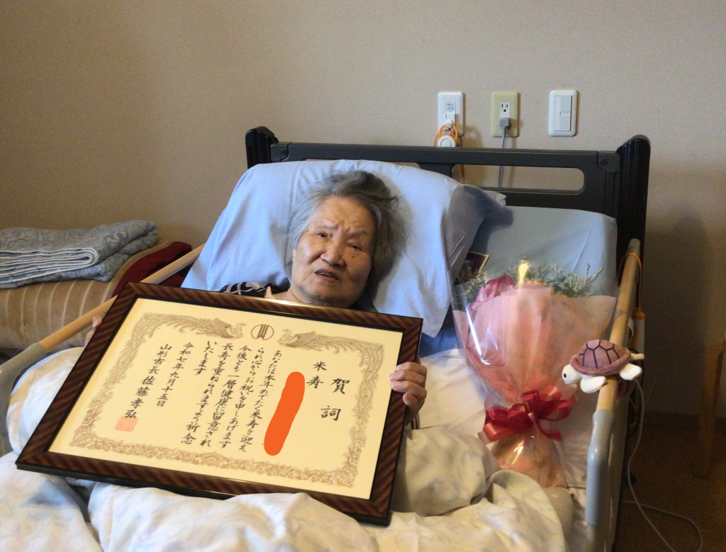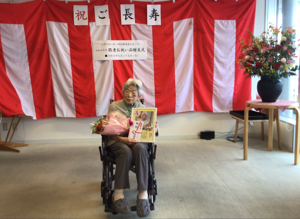 今年度、百寿・米寿を迎えられた入居者様へ敬老お祝い贈呈式を行いました。